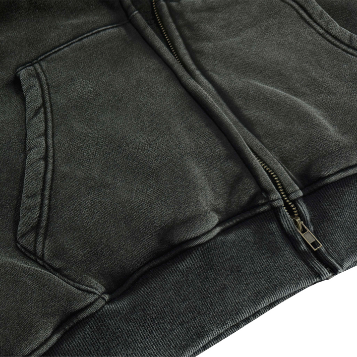 Streetwear Acid Washed Zip Fleece Hoodie Jacket - 360 GMS
